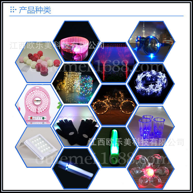 5、LED顏色:紅,黃,藍,白,暖白,綠,紫,五彩等