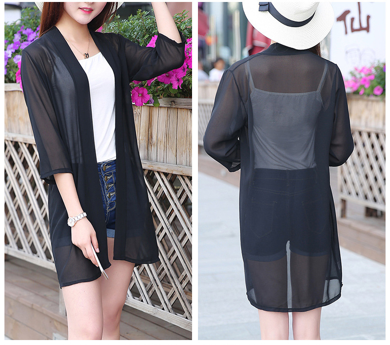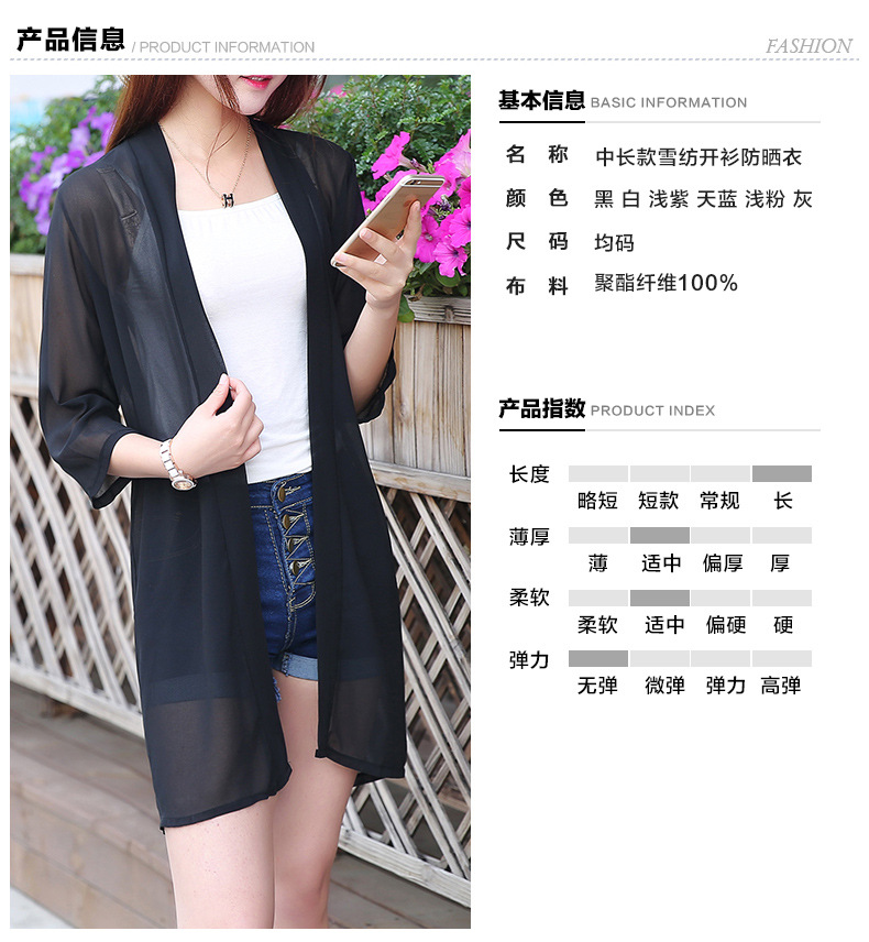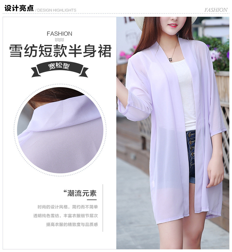 防曬衣女夏2016外套超薄中長款雪紡防曬衫女披肩雪紡外套空調(diào)