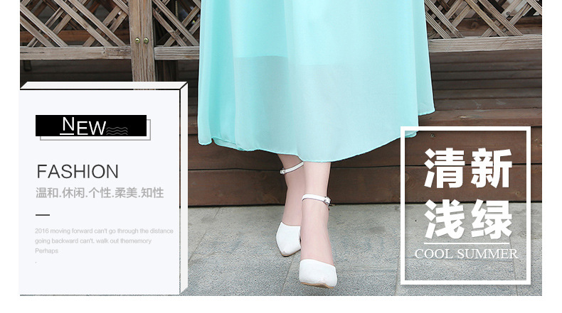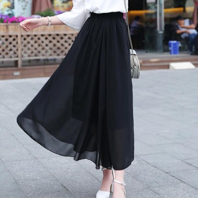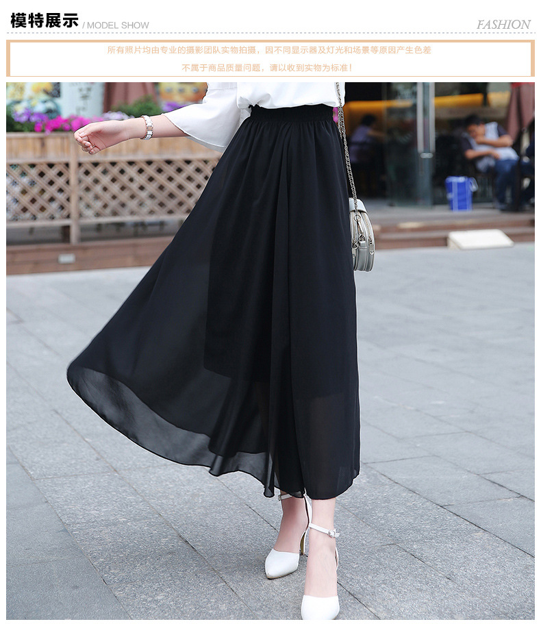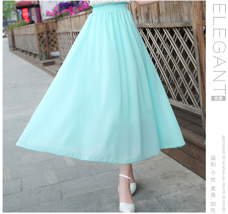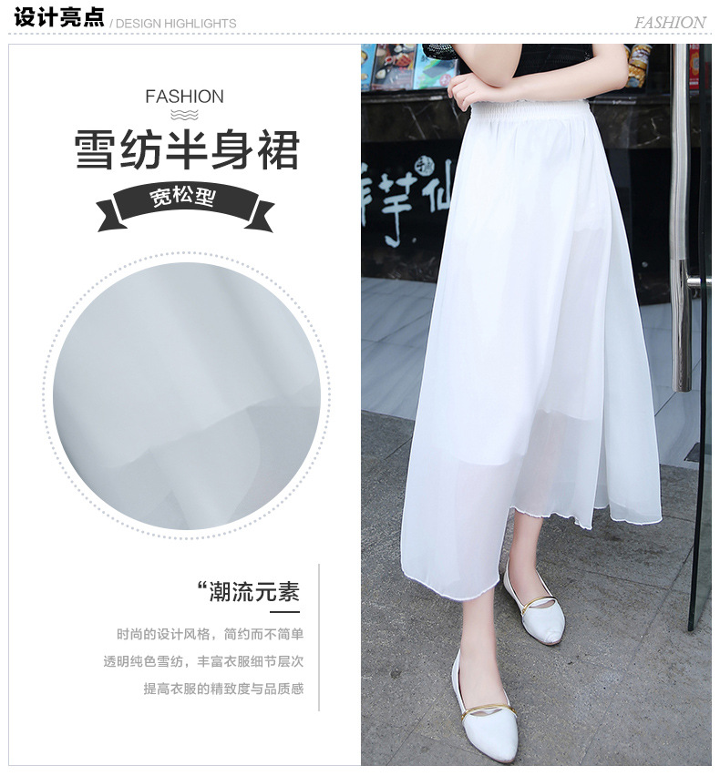 雪紡半身裙長裙大擺裙夏中長款女裝修身松緊腰高腰純色百褶裙A型