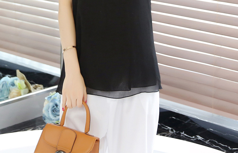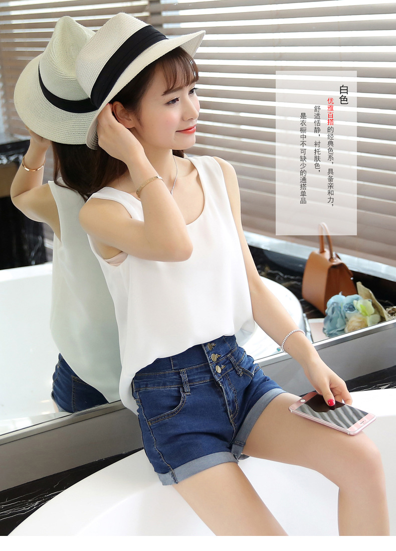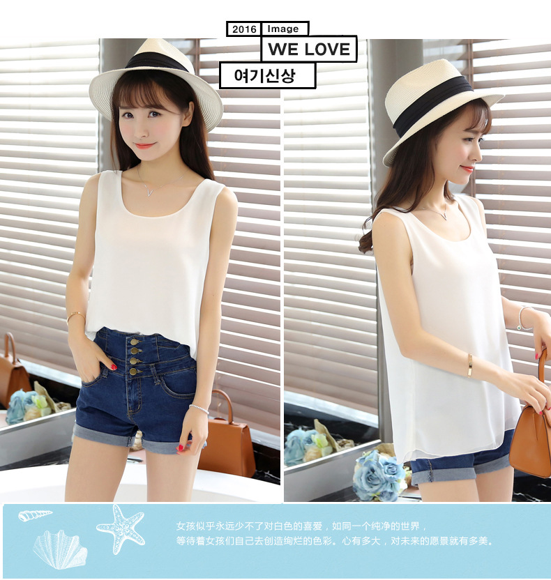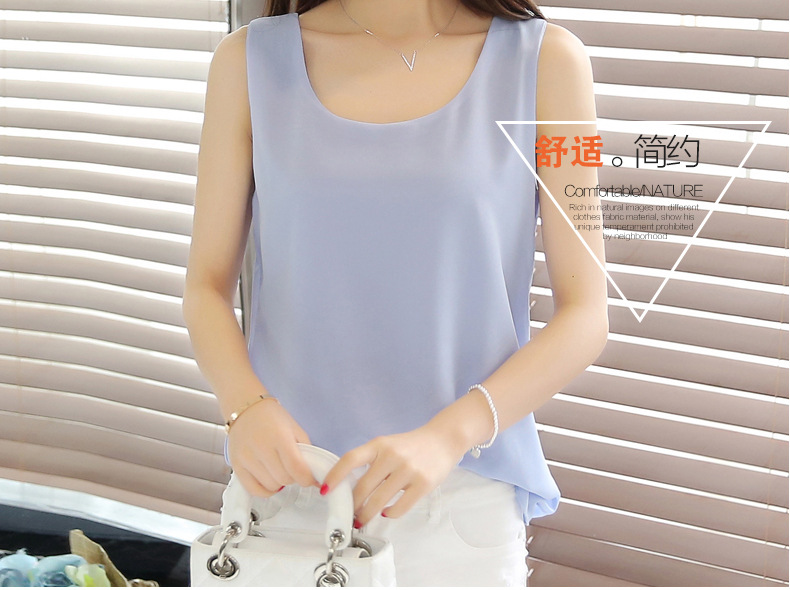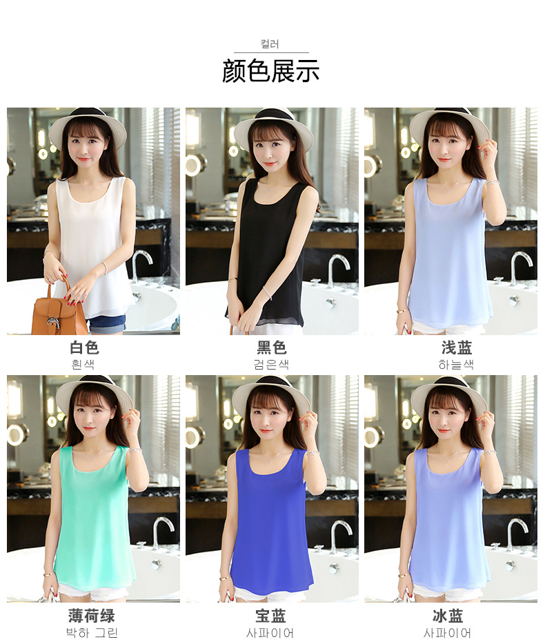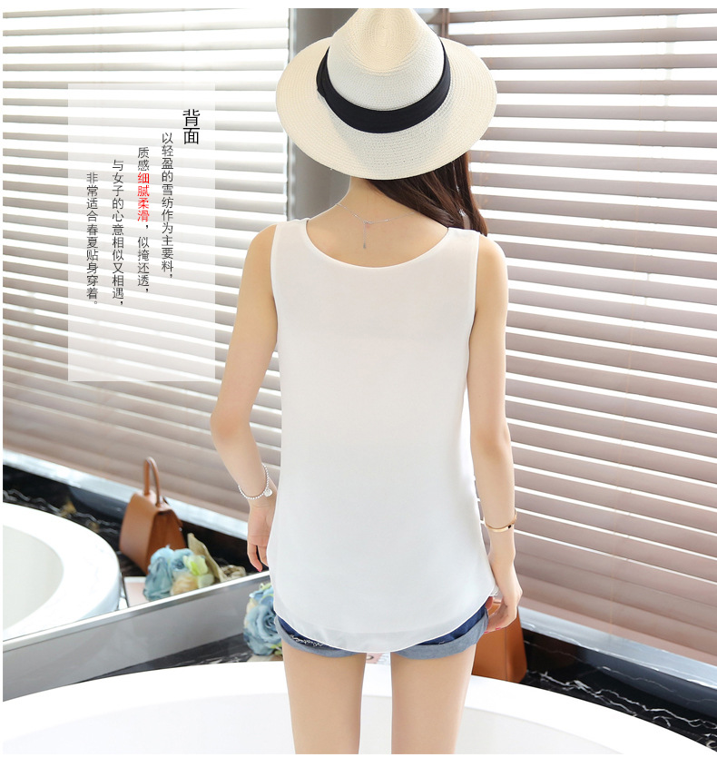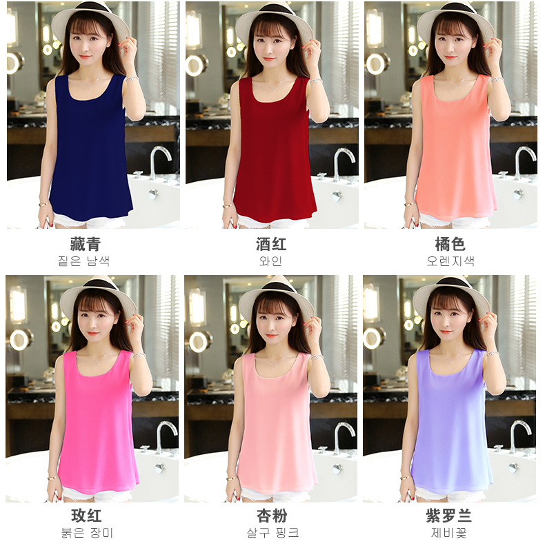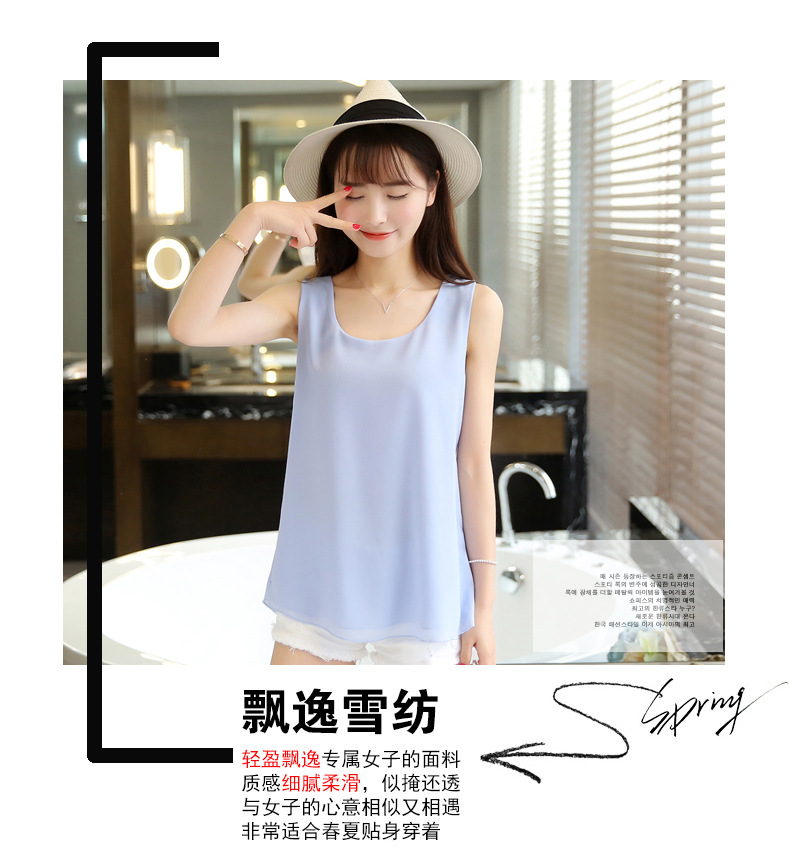 雪紡背心女夏短款外穿無袖打底衫韓版純色雙層衫工字吊帶衫大碼