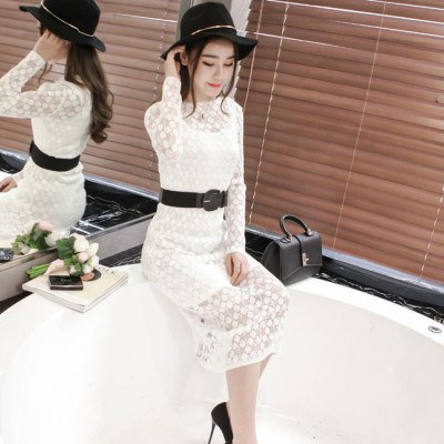 酷芭芭 2016春裝新款韓版蕾絲連衣裙女長款修身長袖裙子直銷