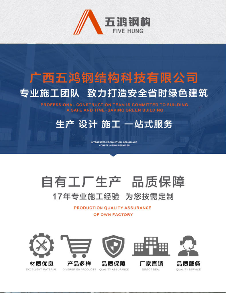 五鴻鋼結構采用輕鋼重鋼互相結合的方式 實現定制化生產、公共崗亭、停車場車庫、鋼結構簡易宿舍,按平米造價