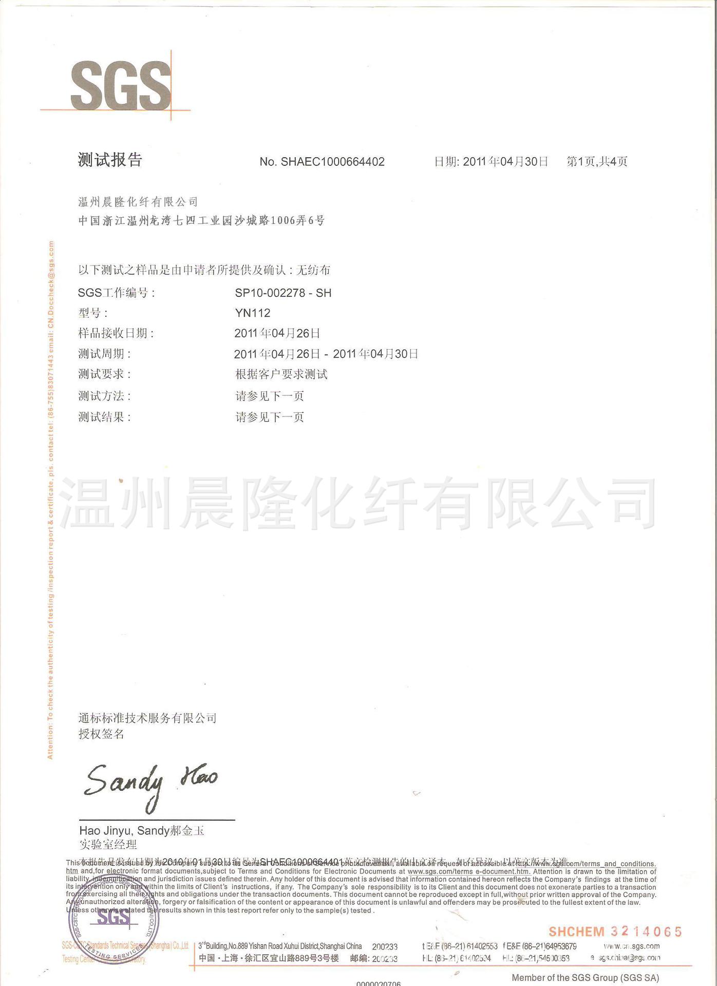 我產品使用埃克森美孚化工提供的專用原料,通過特殊的紡絲工藝,賦予該產品具有良好的彈性、懸垂性 和耐磨性。彈性恢復率在15%以上。 舒適性:手感可軟可硬,有良好的透氣性,拉力好,不易變形。