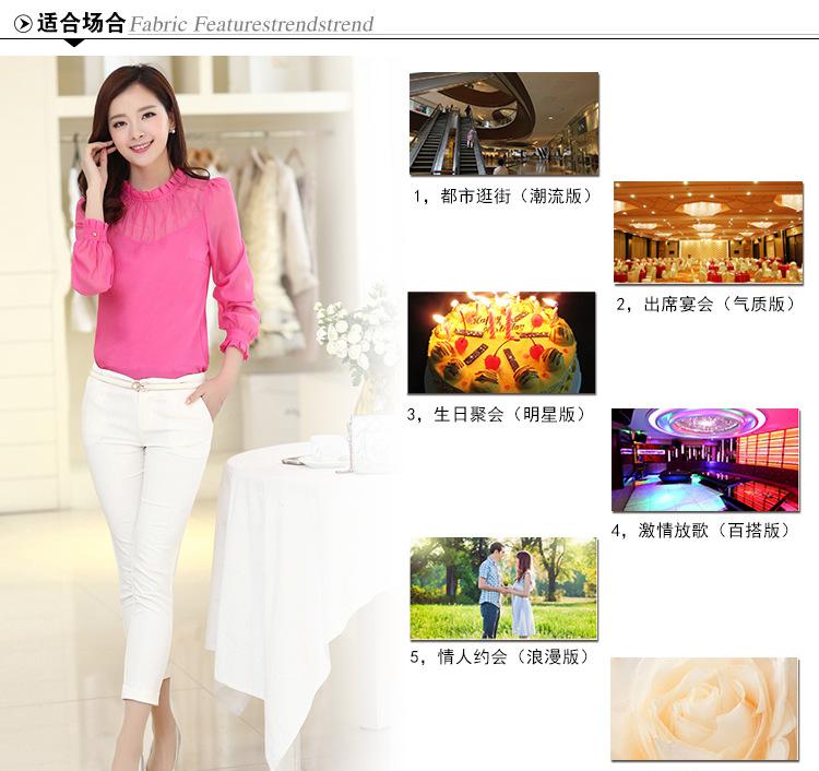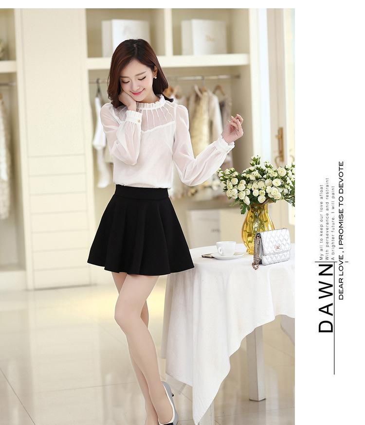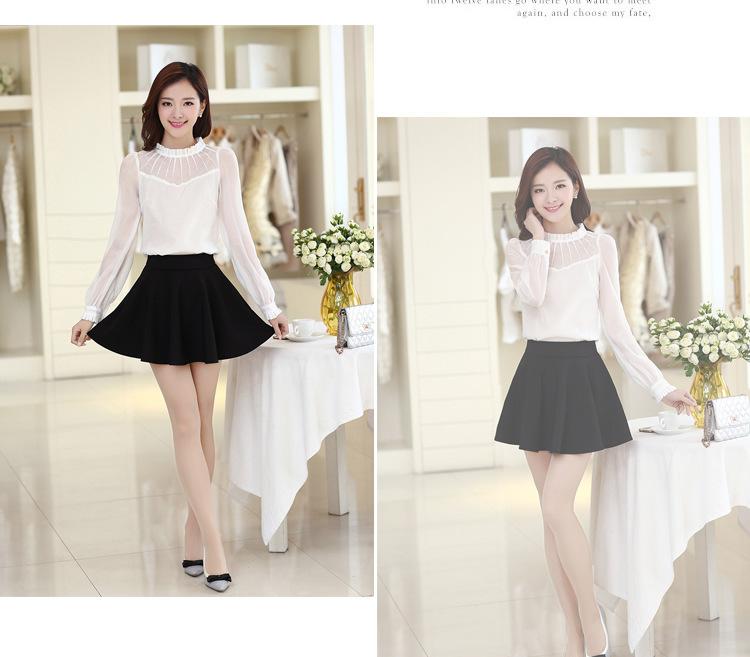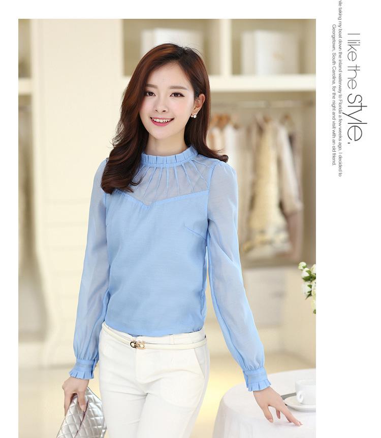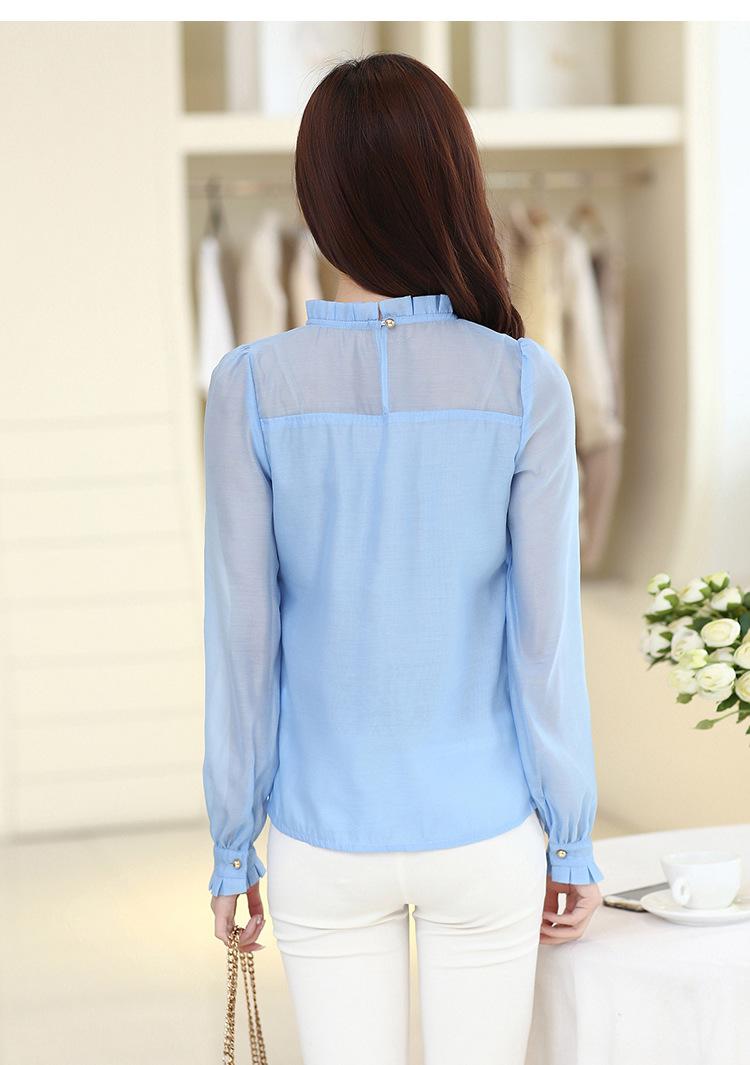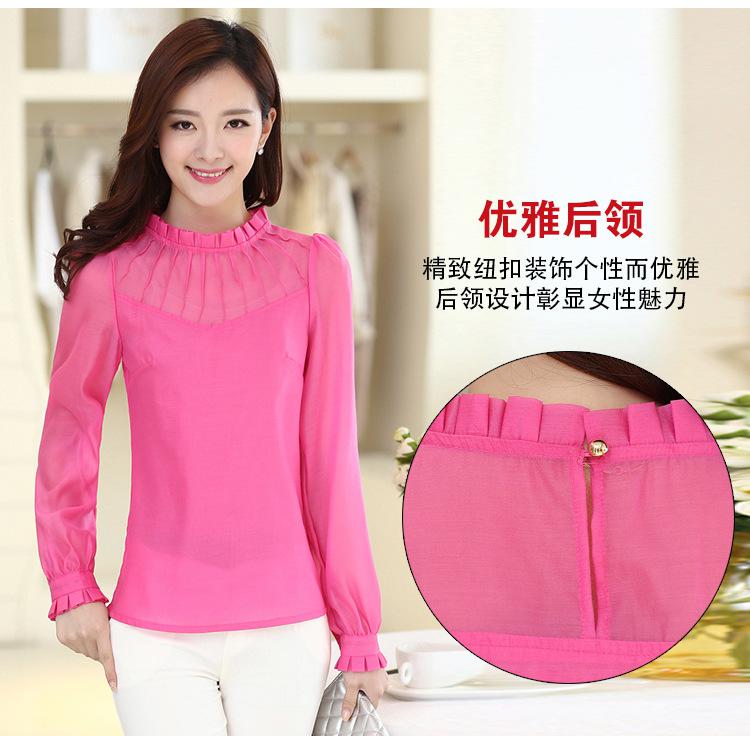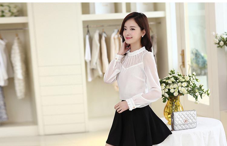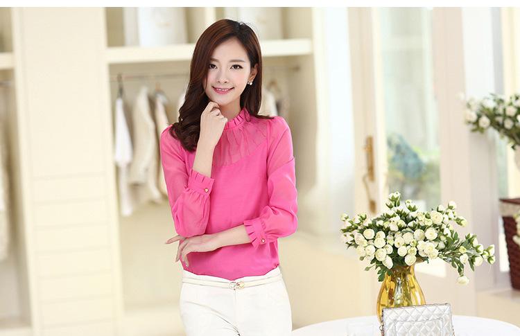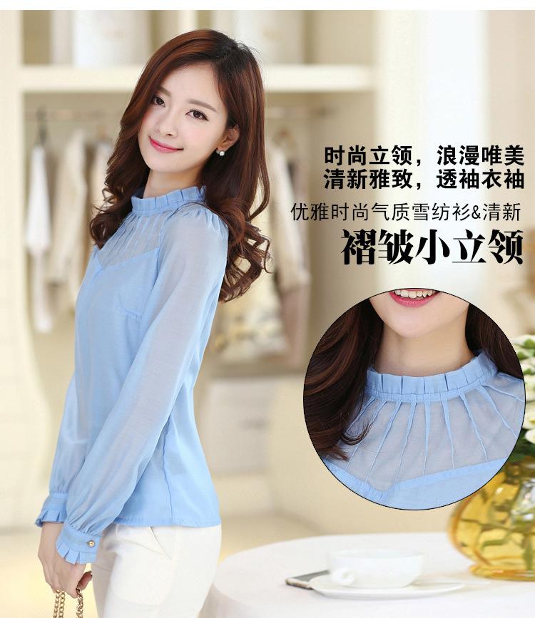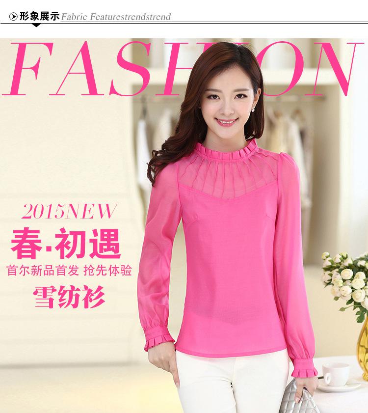 BR1013001 2015春裝新款韓版立領修身顯瘦長袖雪紡打底衫一件代發