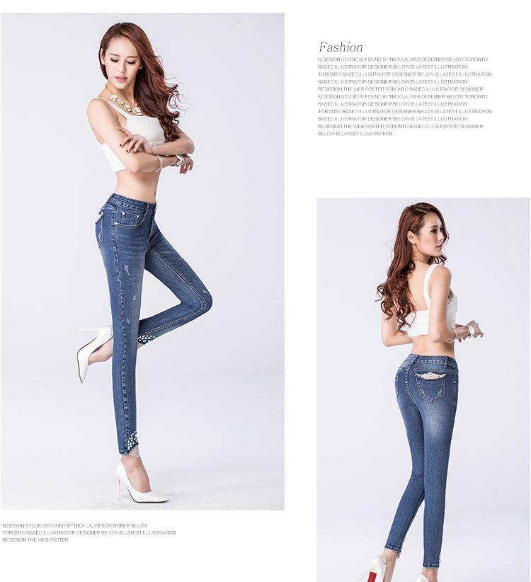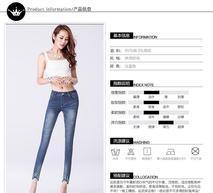 2015春季新品韓版緊身牛仔褲 顯瘦修身彈力女式長小腳褲 NC303085