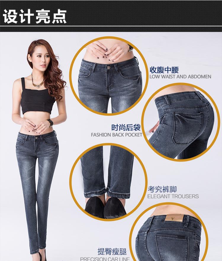 NC303081 春秋新款韓版彈力大碼中腰修身顯瘦長褲潮女士牛仔褲