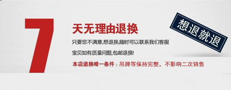 本店承諾七天無理由退貨,只要衣服保持原樣未經改動洗滌、吊牌包裝完整,不影響二次銷售的情況下