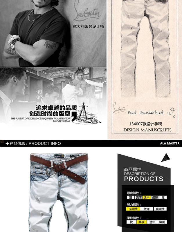 水洗:選用**炒漂、吊磨、割爛重水洗工藝,呈現(xiàn)不一樣的質(zhì)感,更具型男范 | 貨號(hào):134007 | 褲型:直筒型 |