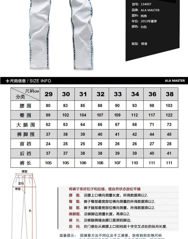 尺碼:29,30,31,32,33,34,36,38 | 外貿(mào)類型:出口 | 褲門襟:拉鏈開襟 |