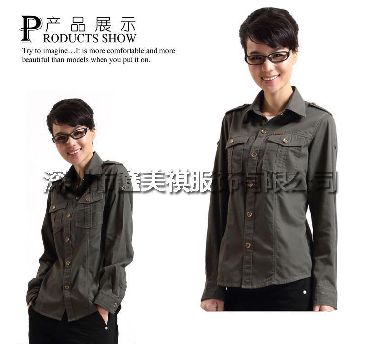 供應鑫美祺dx03軍綠色斜紋夏裝襯衫長袖工作服