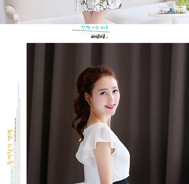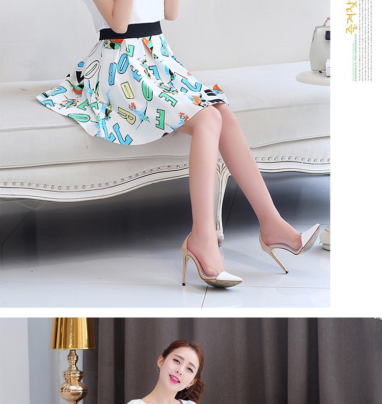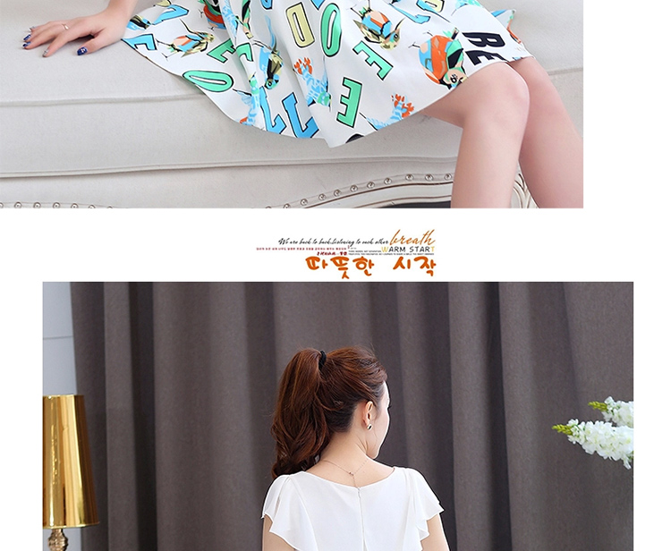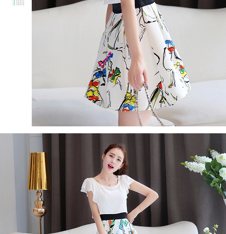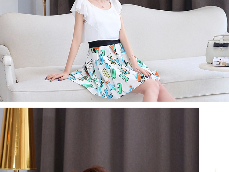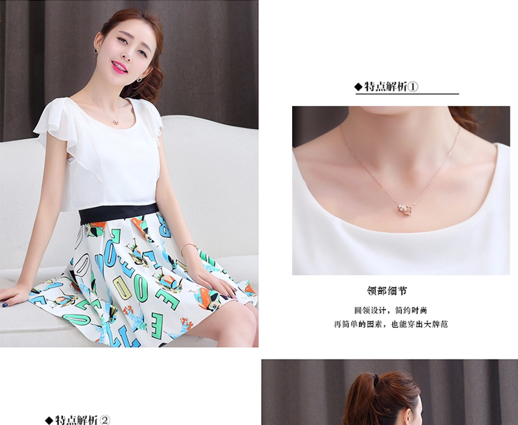 2015夏裝新款韓版修身假兩件小清新收腰印花雪紡連衣裙