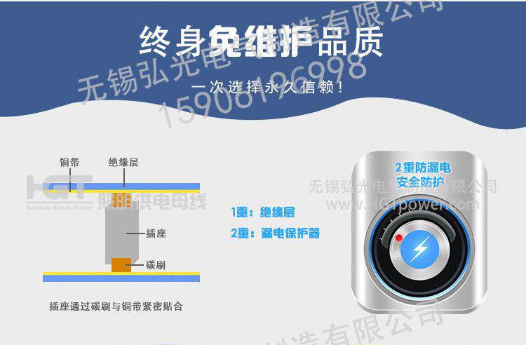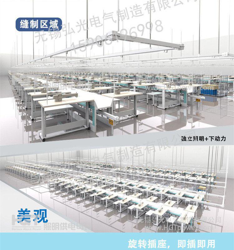 提供動力的移動供電插座(220V&380V)可在貫通的整條母線槽內滑動至任意位置供電并且可在任意位置增加或減少供電點。