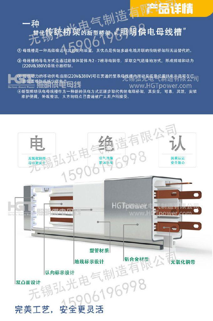母線槽的導電方式是通過絕緣體內2-7根導電銅帶,采用空氣絕緣的方式,形成照明和動力(220V&380V)單獨分路控制。