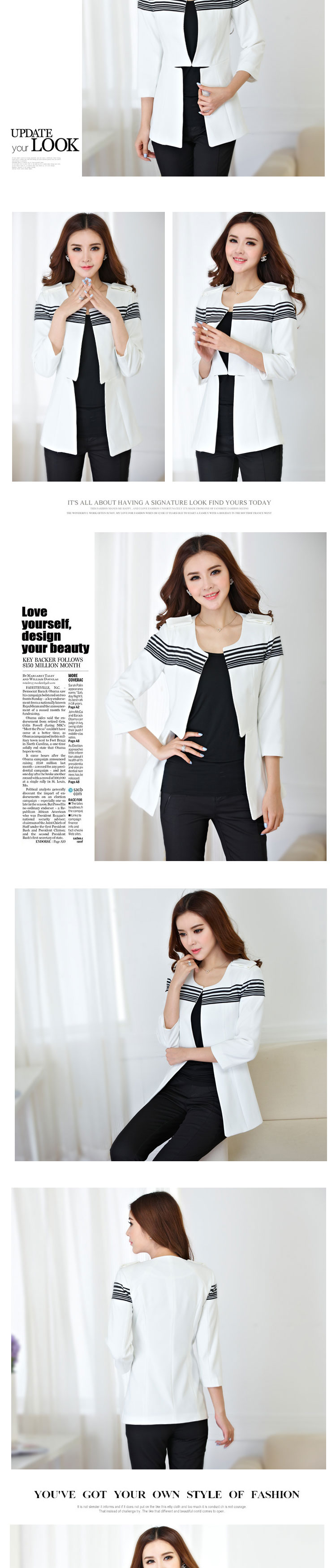 ,韓版條紋修身氣質小西裝 時尚拼接圓領西裝小外套女