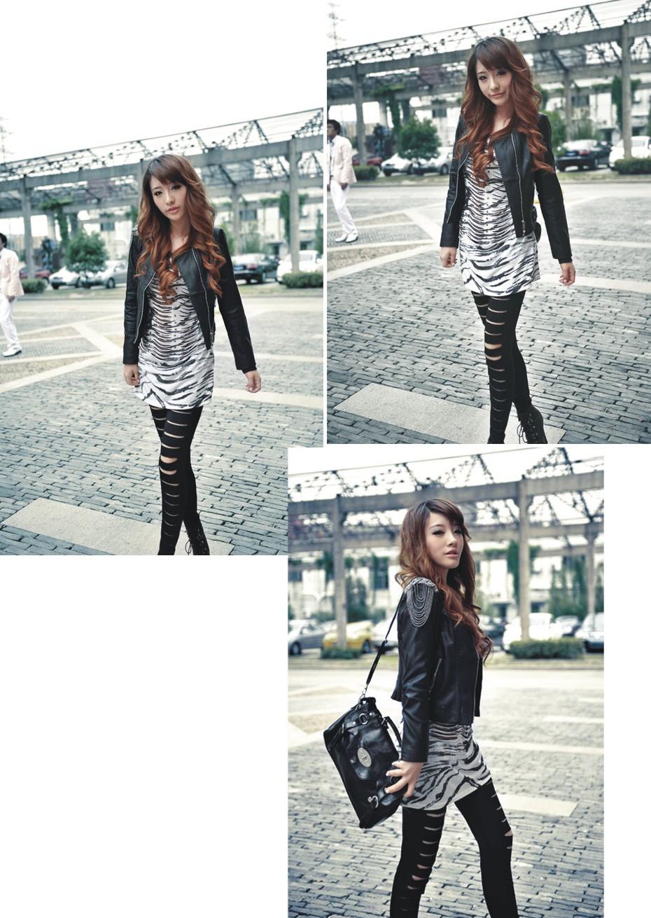 品名:Q112110黑色black(二色入內(nèi)) 秋冬韓版新款 豹紋內(nèi)里 單肩流蘇 機車PU皮夾克外套
