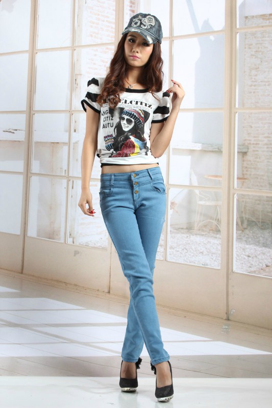 品名:Q112001 圖片色Photo color 秋裝時尚新款 后背系繩 顯瘦牛仔長褲