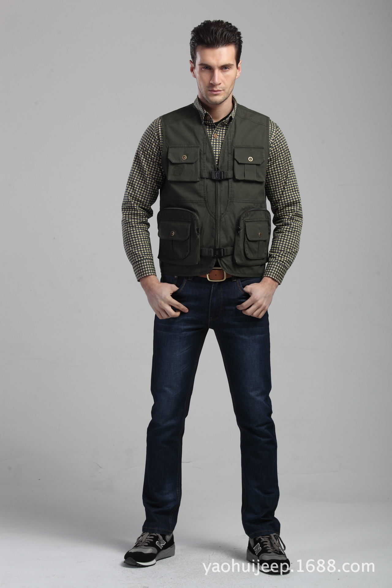 2014直銷新款釣魚馬甲AFSjeep戶外休閑攝影男士無領馬