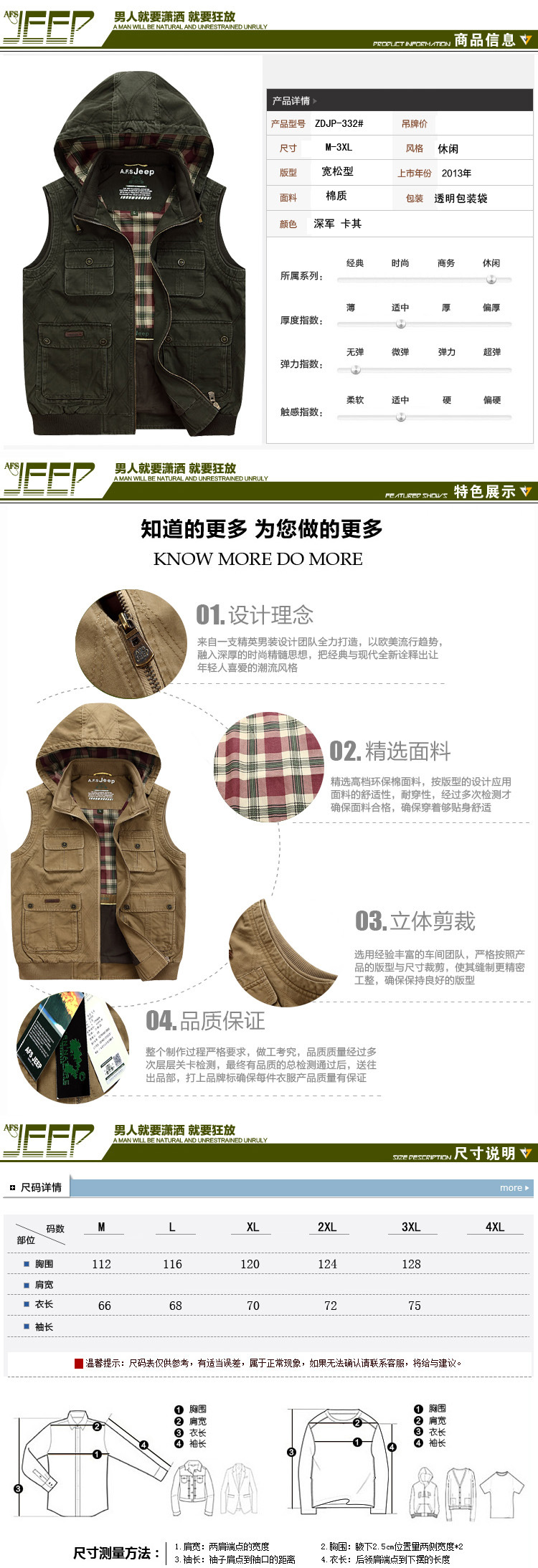 2014年連帽純棉水洗戶外休閑馬甲 新款帶帽可脫卸男士馬夾