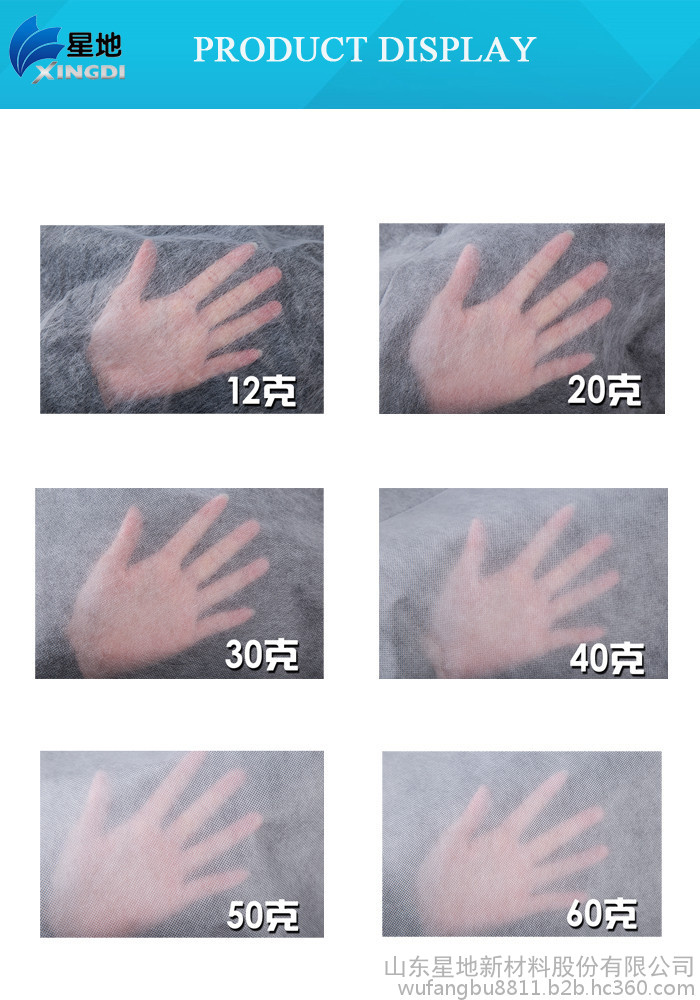 山東星地新材料股份有限公司成立于2013年12月,位于孔孟之鄉的山東省鄒城市,是一家專業生產PP紡熔無紡布的企業。公司擁有超過2萬平方米現代化全封閉廠房,具有深厚的發展潛力和廣闊的發展空間。公司現有溫州昌隆2.4米SS和邵陽紡織機械責任有限公司 3.2米SMXS 紡熔復合無紡布生產線,可以生產SS,SMS,M等各種規格,各種顏色無紡布產品。并可以進行親水、抗靜電、抗酒精、抗油等處理。產品纖維細度好,手感柔軟,布面均勻無斑、顯厚,熔噴層具有良好的阻隔性能,適用于衛材及醫療等領域。如:隔離衣**、手術鋪單、紙尿褲、成人失禁品等。