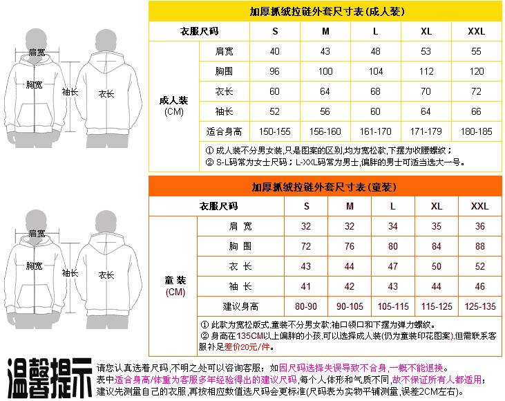 尺 寸:成人裝5個碼S-XXL,童裝5個碼S-XXL