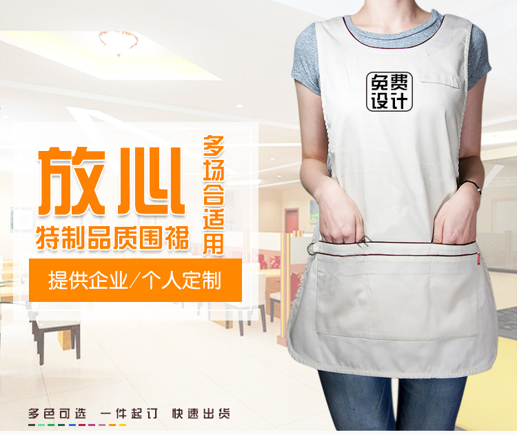 圍裙定制logo韓版時尚廚師咖啡店馬甲圍腰美甲男女工作服套頭罩衣 馬甲圍裙