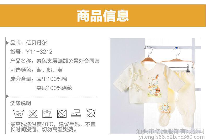 本公司經(jīng)營(yíng)新生兒衣服可愛(ài)卡通夾層骨外合同套寶寶和尚服兩件套檔口貨源,質(zhì)量保證,歡迎咨詢!