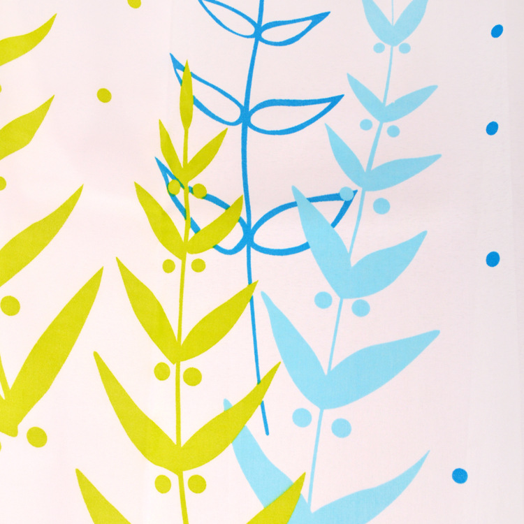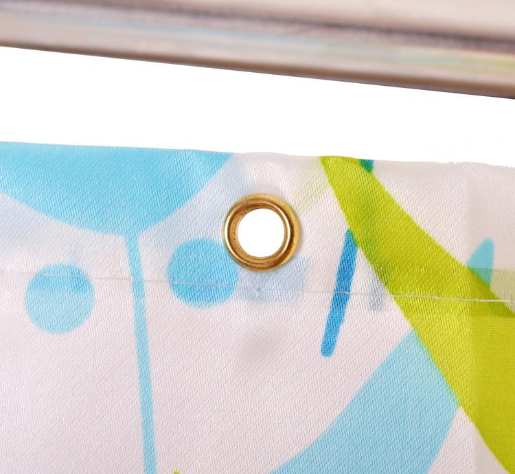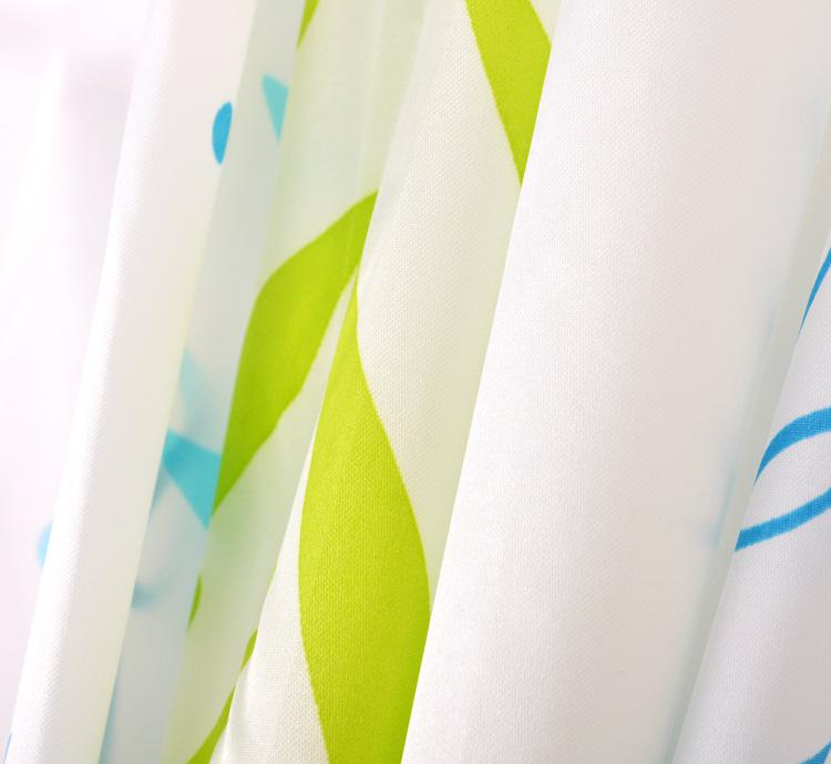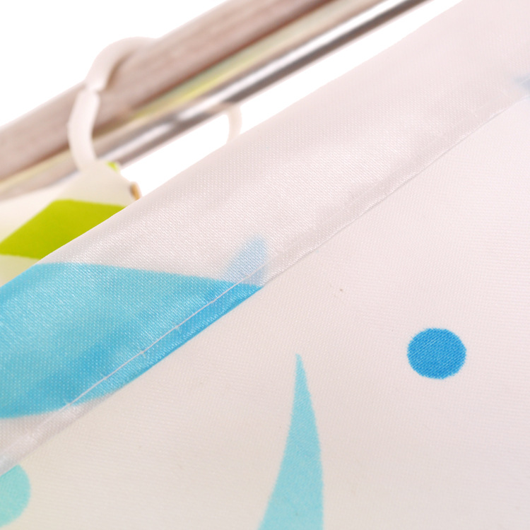 加厚防水100%(具有絲綢般的光澤和舒適的手感,印花色澤鮮亮.有很好的懸透性,滑爽性,更有抗菌和防霉性.下垂感強.并且防水性能強),布料可機洗不同于塑料浴簾,不易脆化 表面經過工藝處理,手感細膩,絲滑如綢緞。由于面料質量較好花色清爽您也可以當窗簾使用哦!