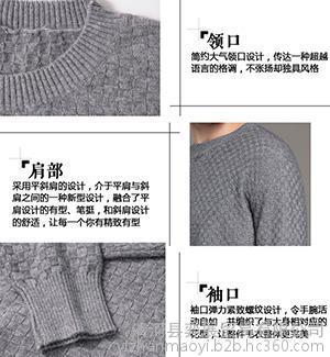品牌:solely 茜歐莉品名:休閑商務打底羊絨衫男士面料:羊絨針型紗支:12針26支顏色:咖啡色 駝色 酒紅色 藏藍色 灰色 橙色尺碼:S M L XL XXL設計風格:休閑商務百搭款單品設計風格羊絨面料,精密**而成,絨質細密,天然柔滑貼合肌膚,特殊處理不易起球,相比其他材質面料,制作成本要求更高,有型挺括,柔軟舒適。色澤飽滿,色牢度高不易變色,高水準印染,面料蘊含恰到好處的柔軟質感,精細親膚,營造出靈活修身的廓形。純色凈面螺紋圓領工藝特色,商務男神所擁有的無法抵抗的優雅單品,以細密規整的車工打造人體工程學外觀,純粹**的線型剪裁,嚴密結構和邏輯思維的**結合.純色凈面,百搭螺紋圓領,車工均勻,走線嚴謹;純色針織,平淡簡約,瘦身設計款,有紋理的編織,顯現男士的陽剛之氣;低擺收口與袖口工藝相呼應,彈性好不易變形,更貼合身體曲線。肩部設計,介于平肩和斜肩之間的一種新型造型,融合了平肩的有型、筆直和斜肩的舒適,讓每穿衣者精致有型;簡約大慶的領口設計,傳達一種超越語言的格調,不張揚卻獨具風格。袖口彈力精致螺紋設計,令手腕活動自如,并編織了與大身相對應的花型,讓整件毛衫整體更完整;下擺短螺紋設計,修改了以往足足10cm的庸俗螺紋下擺,紋理細膩,上檔次;商務辦公,居家,校園,午后咖啡屋,外出旅行,任何場合都讓您暖暖的,備受關注;給愛人情人,家人,朋友,都是暖暖的愛的表達。