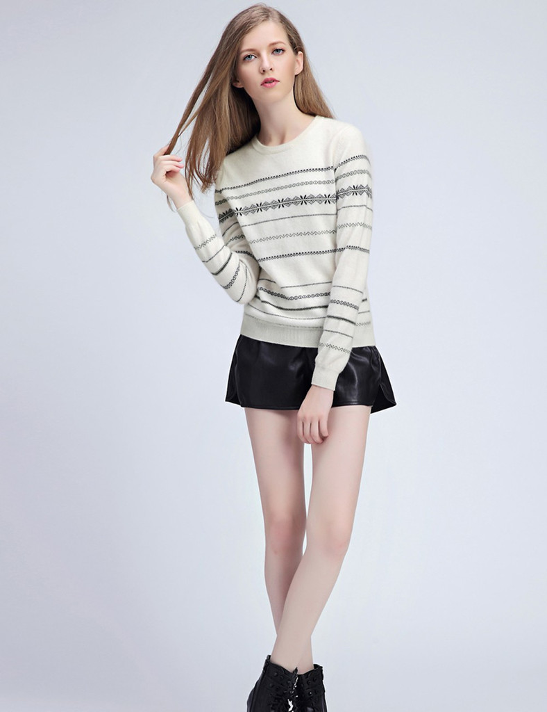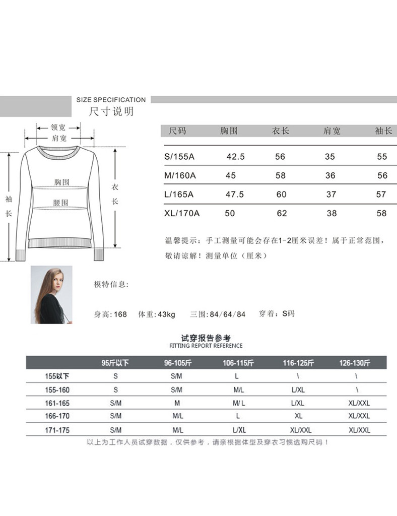 品牌:solely 茜歐莉品名:圖騰印花女士套頭毛衫面料:羊絨顏色:米白色風格:休閑 百搭尺碼:S/155A M/160A L/165A XL/170A 設計風格 全羊絨面料,精密**而成,絨質細密,天然柔滑貼合肌膚,特殊處理不易起球,相比其他材質面料,制作成本要求更高,有型挺括,柔軟舒適。德國機型印花處理技術,圖騰印花,簡約復古,復古而不呆板,活潑張揚,而又活力,適合青春期及校園生活穿著。設計款式新穎,休閑寬松版,時下流行的無肩設計休閑慵懶,打造朋克主意時尚,后擺加長設計,閑適闊達,張揚不拘一格。先進的縫合技術,螺紋經典圓領,優雅知性,簡潔大方,勾勒頸脖線條,展現迷人鎖骨。易搭配。精致螺紋袖口處,自然舒適,整體效果干練,氣質感十足,簡潔,包裹嚴實,居家,辦公,午后咖啡屋,外出旅行,任何場合都讓您暖暖的,備受關注;愛人情人,家人,朋友,都是暖暖的愛的表達。