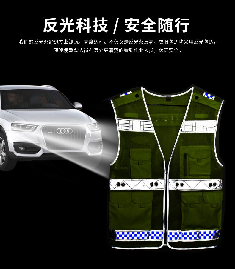 現貨直供 雨豹牌夏季透氣網格反光馬甲 夜行彩燈安全反光服 道路交通執勤防護馬甲可印字