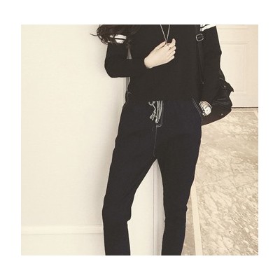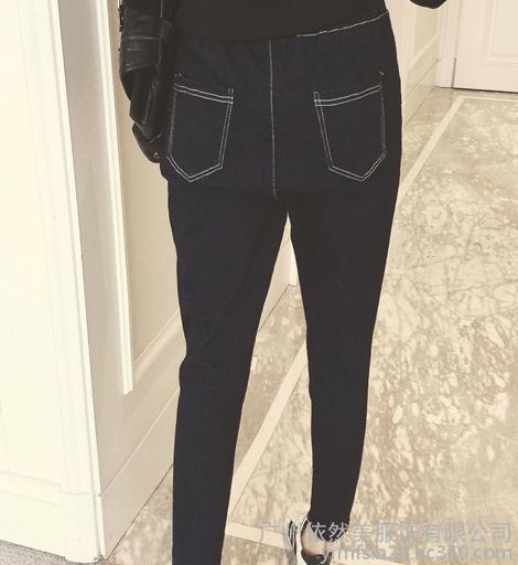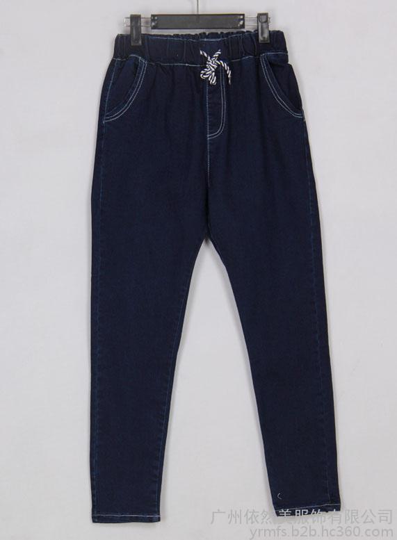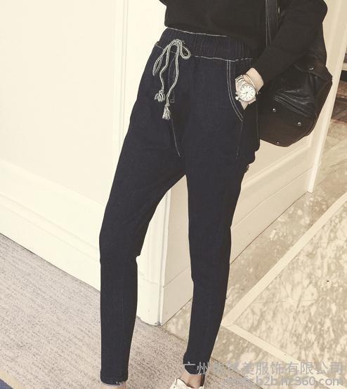 品名:K27159 2016韓國代購新品休閑褲 抽繩收腰寬松牛仔褲面料:牛仔彈性:腰間有彈性拉鏈:無內(nèi)襯:無口袋:有其他配飾/附件:無