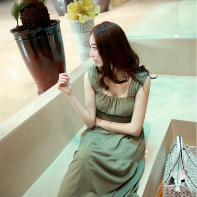品名:Q19388 2014秋季新款 性感裹胸吊帶 收腰顯瘦 潮流百裥裙長裙 雪紡連衣裙
