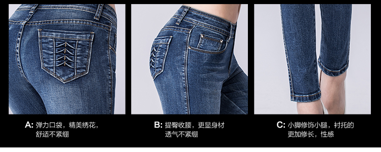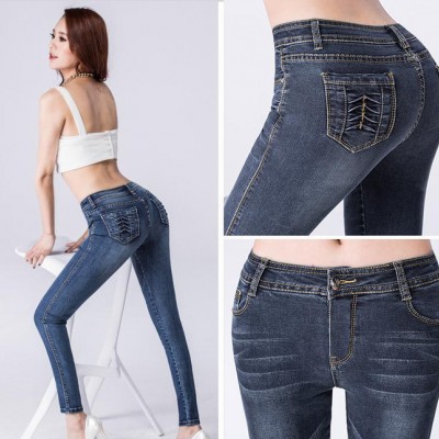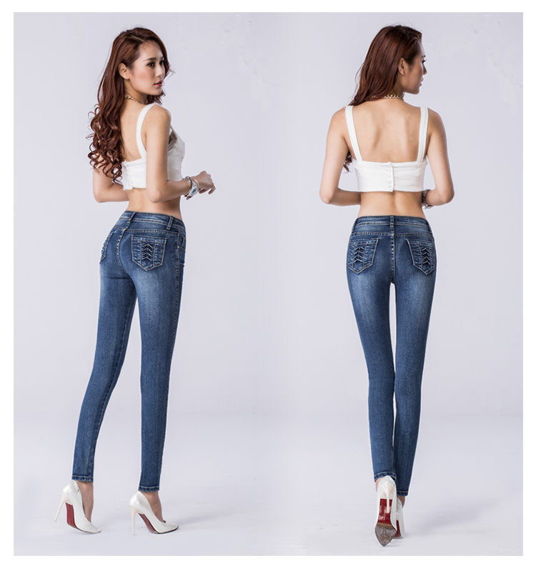 15年春裝新款高腰女式牛仔褲修身顯瘦小腳褲韓版潮女鉛筆褲