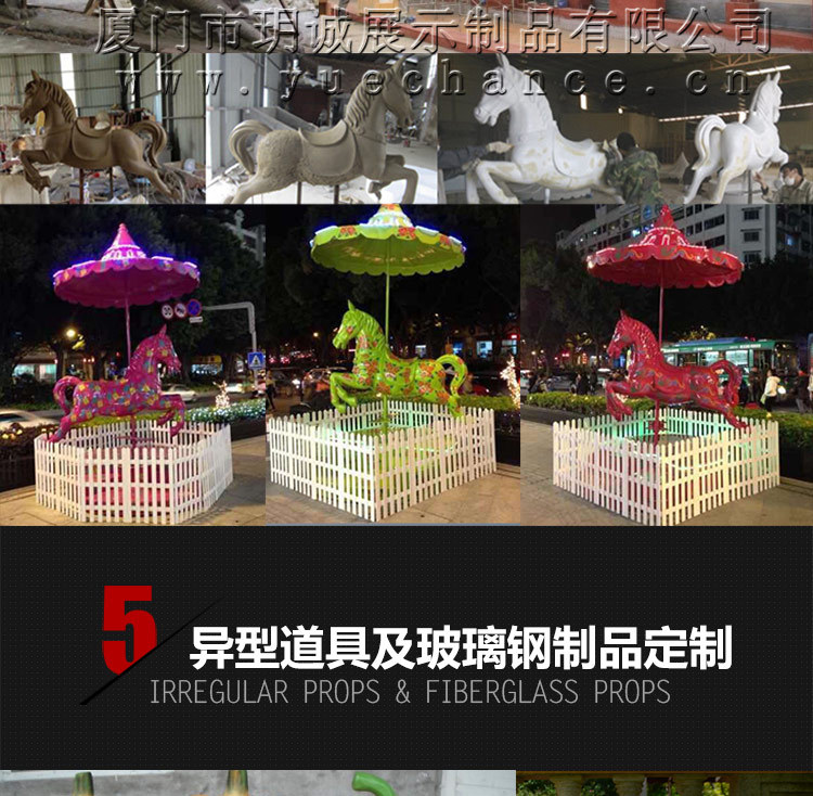 廈門玥誠展示制品有限公司,是一家商業展示道具綜合供應商.公司長期致力于商業道具產品的研發以及生產,5年道 具OEM代工生產經驗,對品牌公司陳列道具、櫥窗布置、節日活動造景、商場美陳布置、室內異形裝飾品、高端會所軟裝布置有較為豐富的經驗、對一些非常規 的材料及制作工藝有良好的認知能力及解決方法。