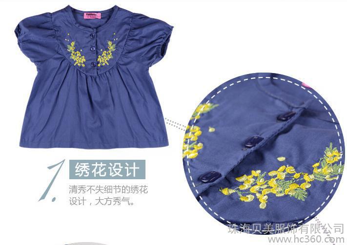 供應優貝哈尼41413童裝**繡花紐扣短袖襯衫套裝