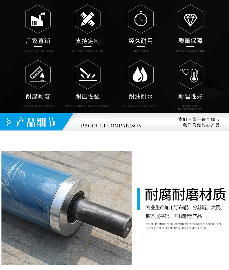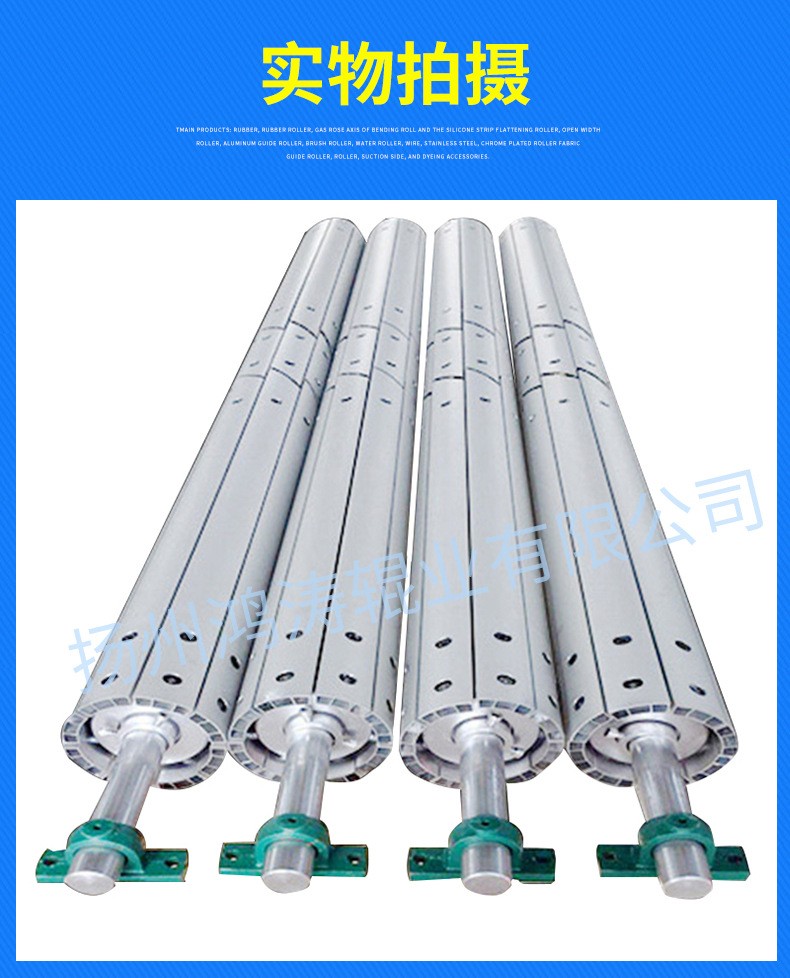 主要產(chǎn)品:橡膠彎輥(彎曲輥,弧形輥,展平輥)、膠輥(丁晴橡膠輥,硅膠輥,印刷膠輥)、氣漲軸(氣脹軸,凸鍵式氣漲軸,瓦片式氣漲軸,鋁合金氣漲軸、氣漲套、氣漲軸氣嘴,充氣手柄)、硅膠條展平輥、開(kāi)幅輥(擴(kuò)幅輥,伸縮輥,鋁合金開(kāi)幅輥,不銹鋼開(kāi)幅輥)、鋁導(dǎo)輥、毛刷輥、冷水輥、分絲輥(繞絲輥)、鍍鉻輥(電鍍輥,導(dǎo)輥)、不銹鋼導(dǎo)布輥(導(dǎo)輥)、軋輥(不銹鋼軋輥,橡膠軋輥)、吸邊器及印染配件等。