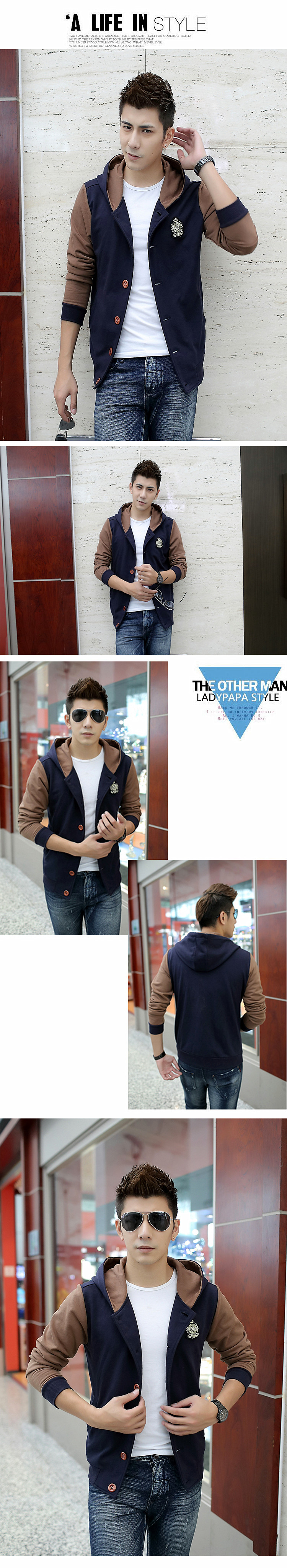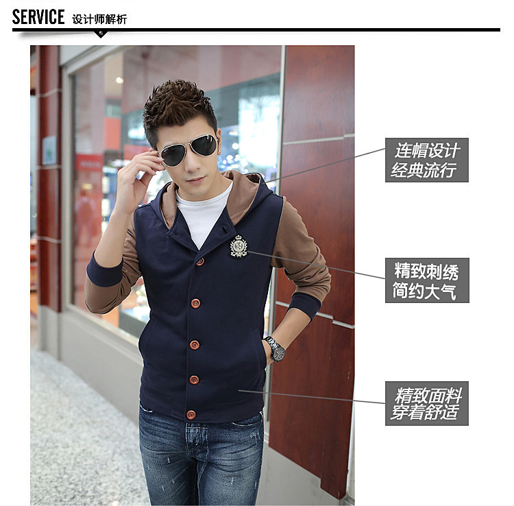 2015新款春裝男裝修身韓版袖子拼接連帽男士衛衣外套時尚潮男外套