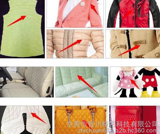 1:羽絨、間棉、尼絨大衣、風(fēng)衣外套、西裝、襯衫等各式服裝: (自動(dòng)車(chē)縫各種服裝圖型線跡,自動(dòng)車(chē)縫圖形間線, 自動(dòng)車(chē)縫搭帶,外套風(fēng)衣摩術(shù)貼皮扣. 自動(dòng)點(diǎn)位劃線等等多功能)