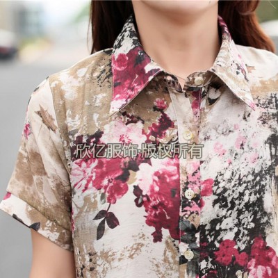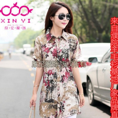 2016夏季大碼女裝水墨真絲短袖襯衫中長款桑蠶絲寬松顯瘦雪紡