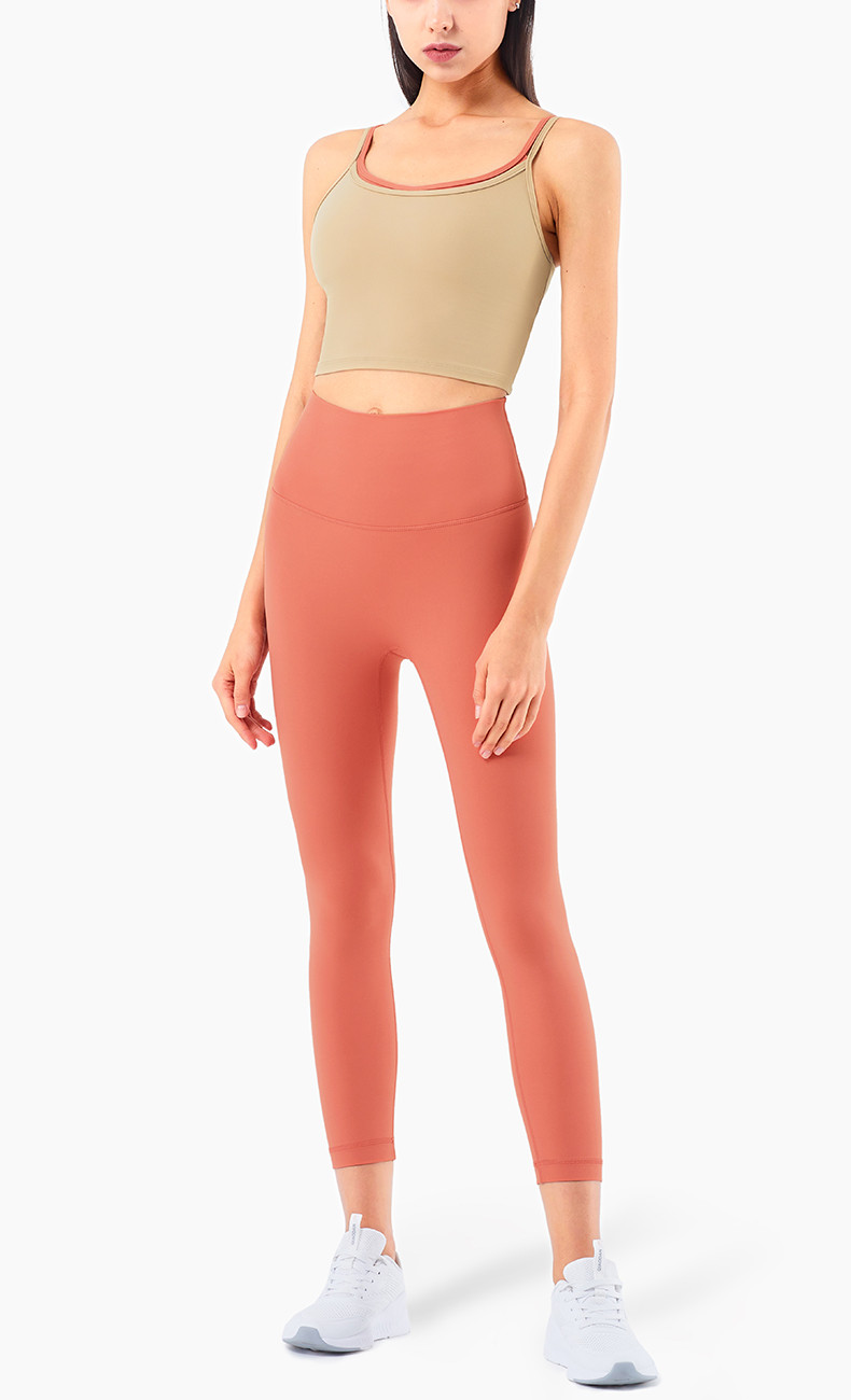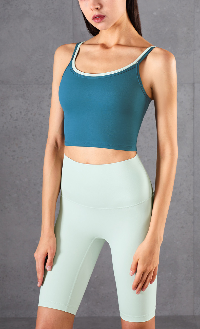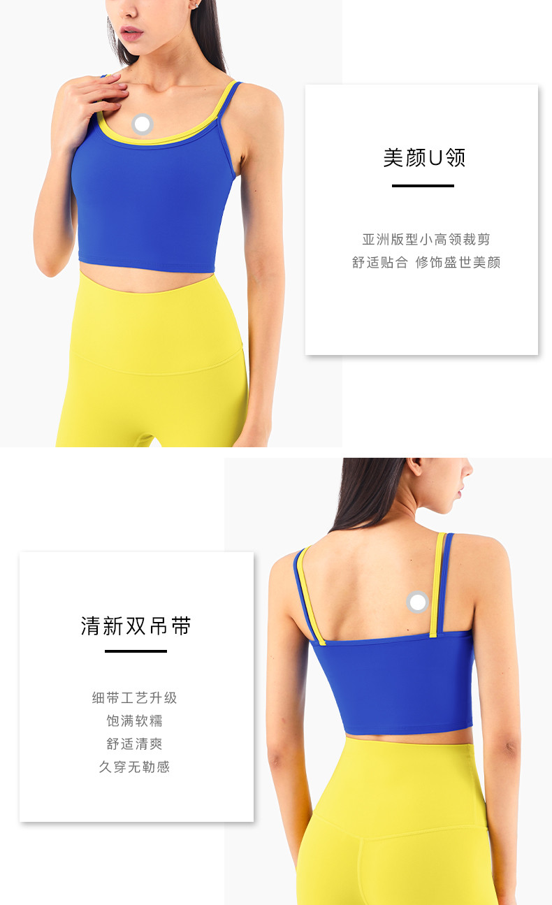 2021新款lulu運動背心吊帶女夏帶胸墊拼色假兩件裸感瑜伽健身內衣 瑜伽服廠家批發