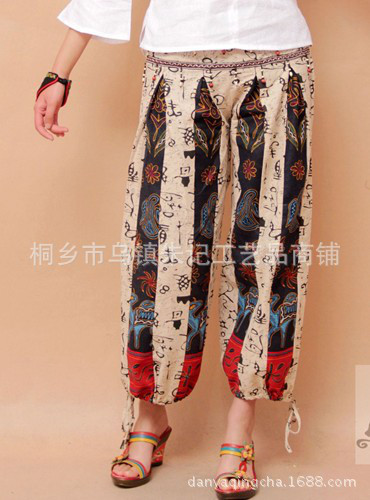 亞麻布料長褲**民族,又不失時尚色彩。此款加串