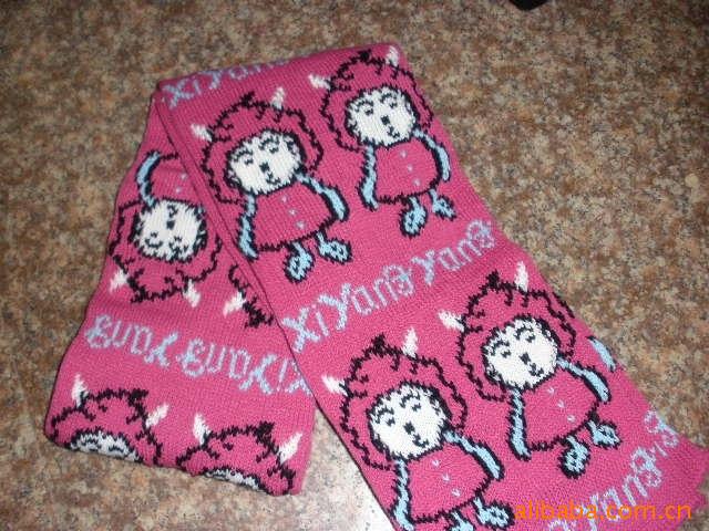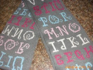 瑞麗時尚晴綸針織兒童圓機字母卡通提花圍巾