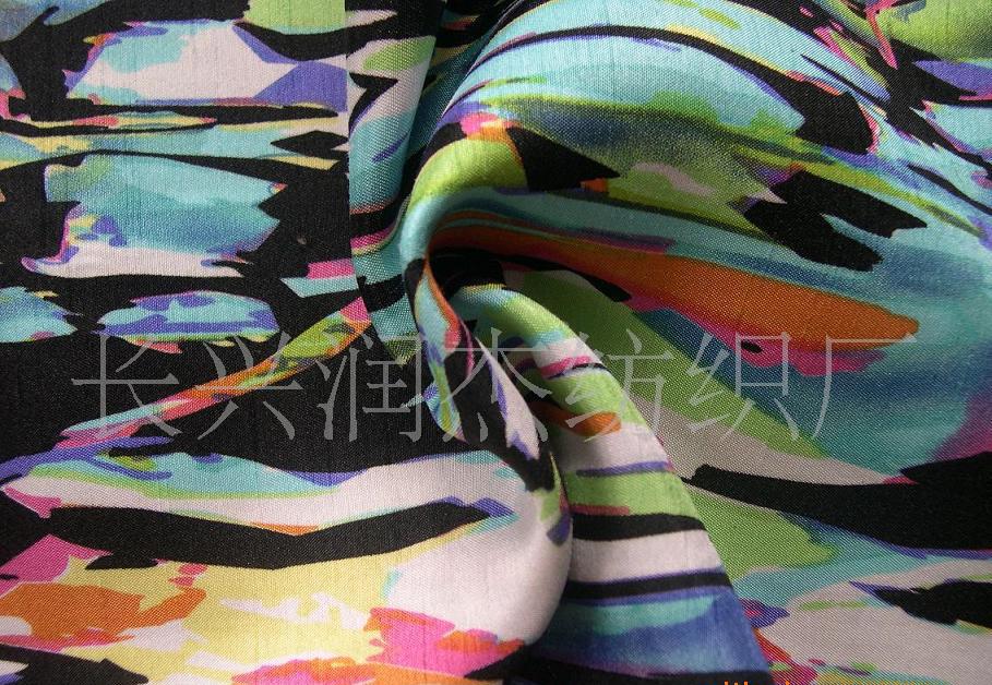 色丁**是satin的音譯.色丁是一種面料,也叫沙丁,中文里叫五枚緞。通常有一面是很光滑的,亮度很好**是它的緞面,所以叫五枚緞。規(guī)格通常有75×100D,75×150D等。原料:可以是棉,混紡的,或者滌綸,也有是純化纖的,是面料的組織不同形成的。主要用于各類女裝,睡衣面料或內(nèi)衣的。該產(chǎn)品流行性廣,光澤度懸垂感好,手感柔軟有仿真絲效果。 該面料用途十分廣闊,不僅可制作休閑的褲裝、運(yùn)動(dòng)裝、套裝等,而且又是床上用料。面料制成衣穿著舒適,而頗受歡迎。“彈力色丁”面料采用以滌綸FDY大有光50D*DTY75D+氨綸40D為原料,采用緞紋組織在噴織機(jī)交織而成,由于經(jīng)線采用大有光絲,使布面具有魅力,以輕薄、柔順、彈性、舒適、光澤等優(yōu)勢(shì)占領(lǐng)了近期面料市場(chǎng)一席之地。