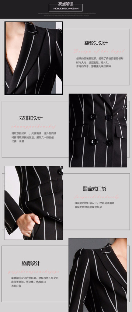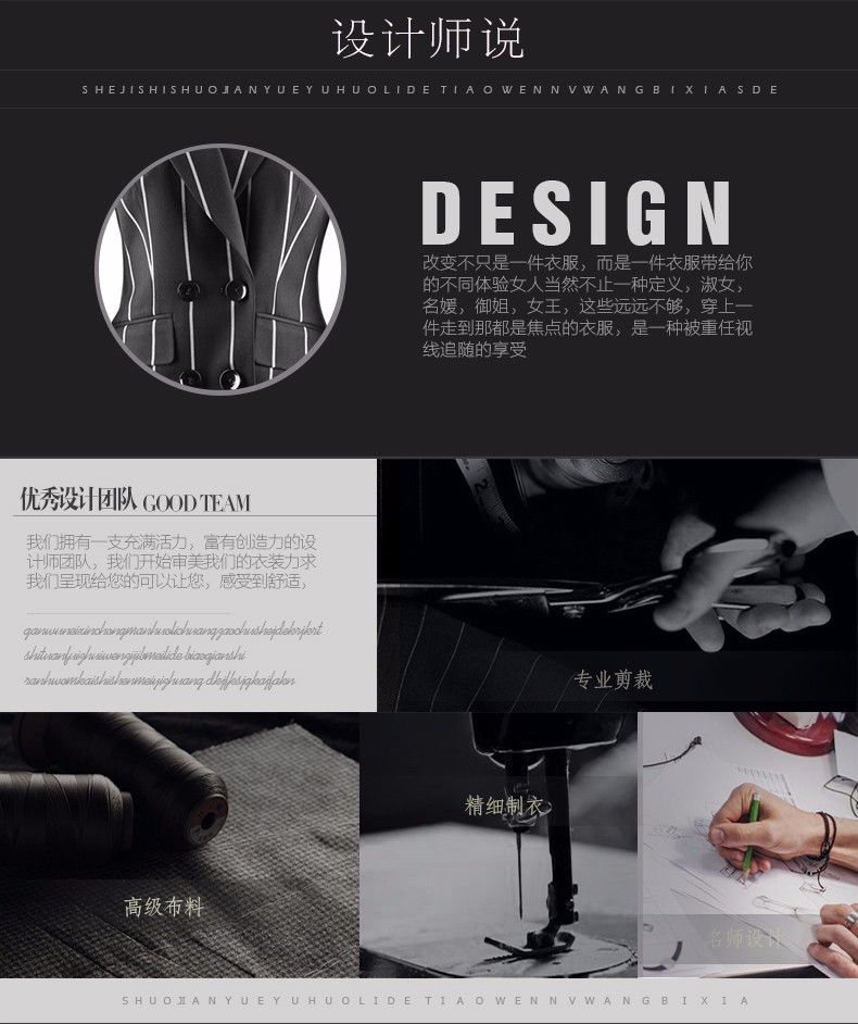 修身白搭是此款條紋職業裝吸引眾多美眉下手的關鍵,高工藝包邊,360度**剪裁,配以精致做工,讓它成為你詮釋高品質人生的**!
