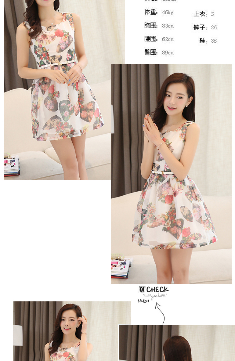 2015夏季韓版無袖碎花連衣裙小清新背心裙蓬蓬裙