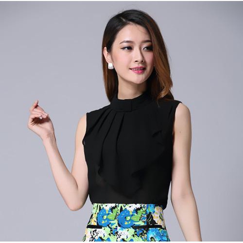 塵顏2015夏裝新款高端女裝OL通勤優雅氣質無袖真絲靚麗清涼女襯衫