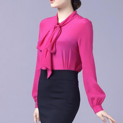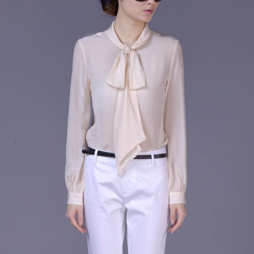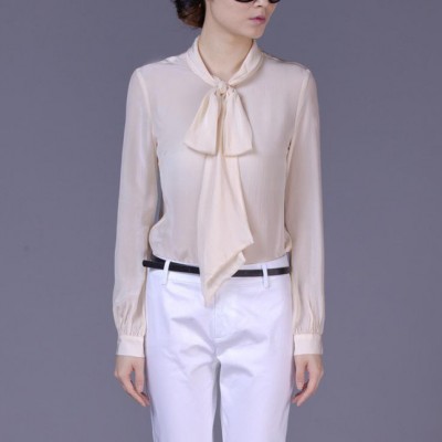 塵顏2015夏裝新品大碼女裝OL通勤翻領(lǐng)長(zhǎng)袖真絲純色長(zhǎng)袖白襯衫**
