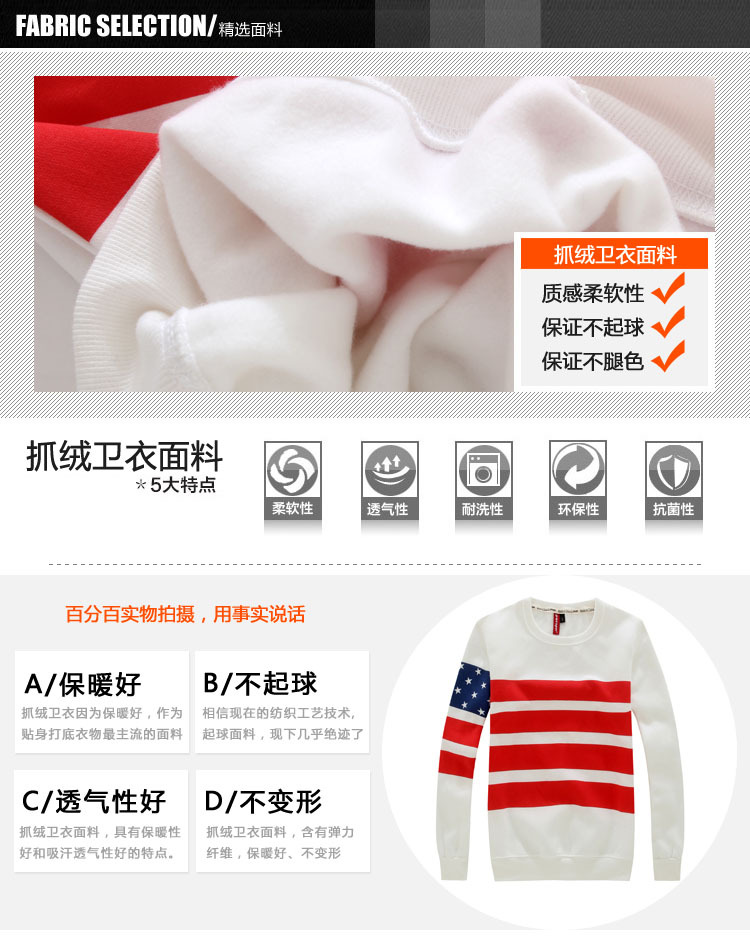 ◆ 面料:棉混紡衛(wèi)衣 | ||||