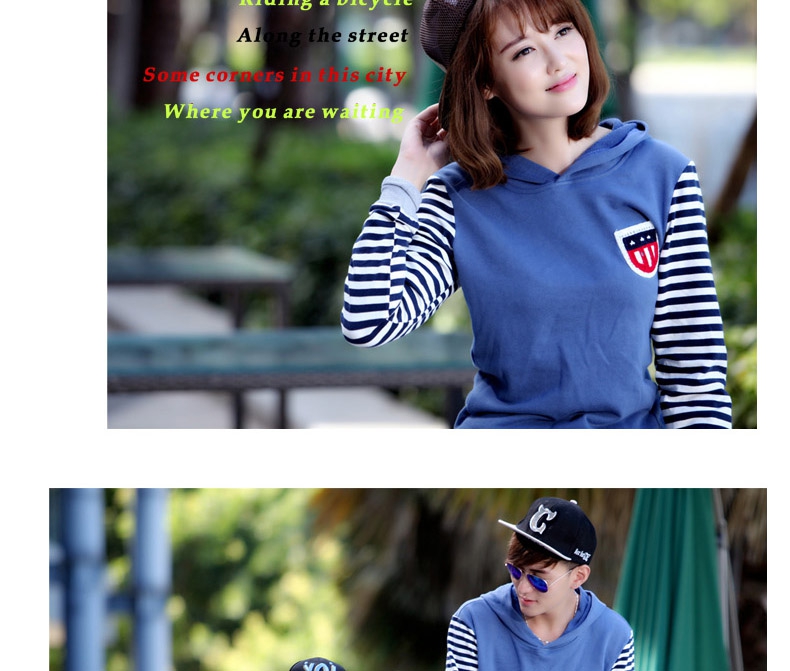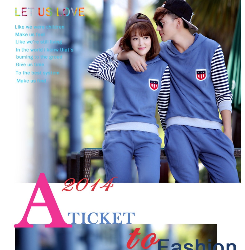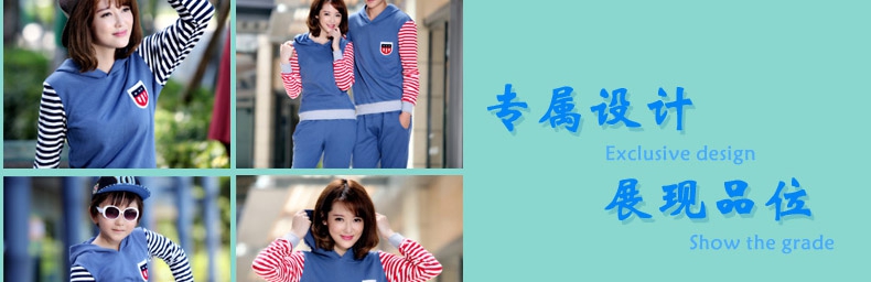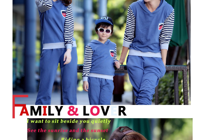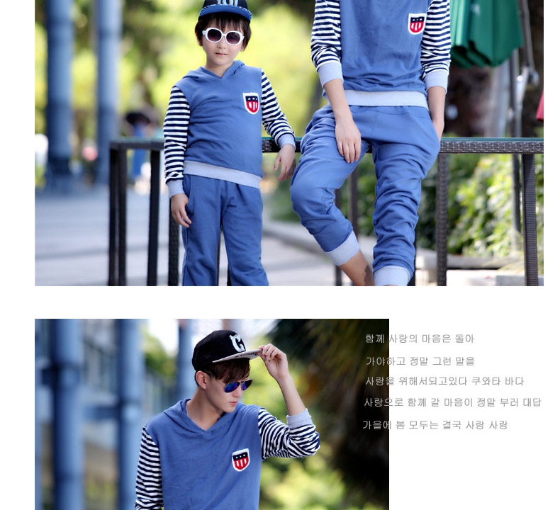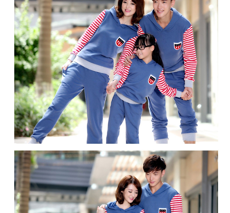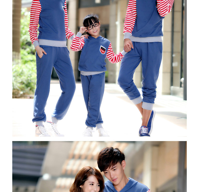 親子裝秋冬裝套裝全家裝2014款條紋假兩件長袖連帽親子衛衣代