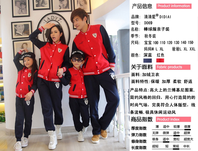 親子裝套裝秋冬裝加厚抓絨衛衣棒球服外套全家裝套裝一件代發貨
